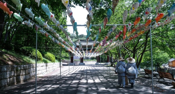 독송 중에는 잡념을 거두고 관세음보살의 자비를 마음에 새깁니다.